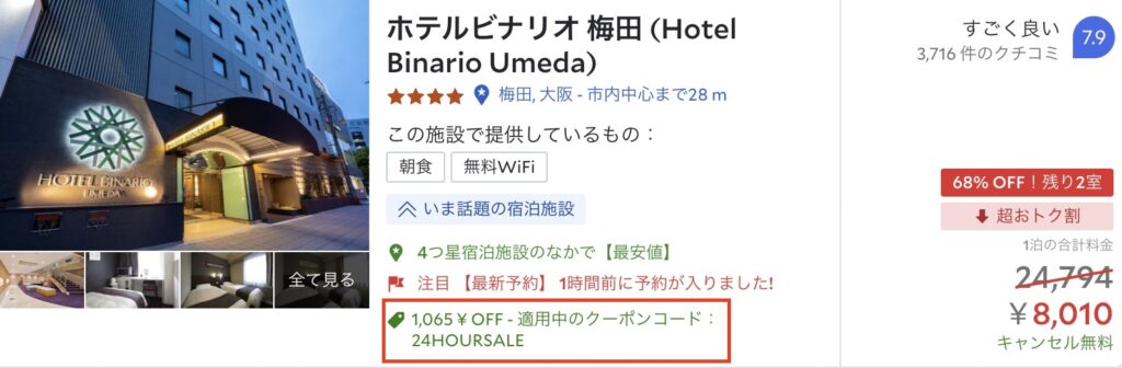 agodaで検索後に自動適用されるクーポンコードやプロモコードは、全ての宿泊施設・プランで使えるわけではありません。