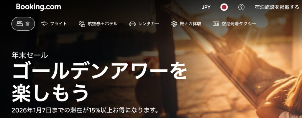 現在、Booking.com(ブッキングドットコム)で利用できるお得情報は下記のとおりです。