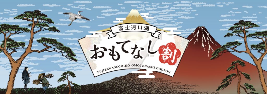 富士河口湖町では、宿泊割引と富士河口湖おもてなし割商品券を配布により、町内の宿泊需要を喚起するとともに、観光消費促進を目的に「富士河口湖おもてなし割」を実施。