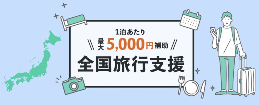 全国旅行支援は、国内の旅行代金を20%割引(上限5,000円まで)。