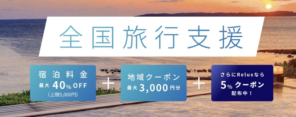 Reluxは、全国旅行支援の割引を使える対象予約サイトです。